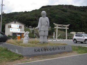 位於鳥取縣鳥取市白兔海岸的大國主神與白兔雕像