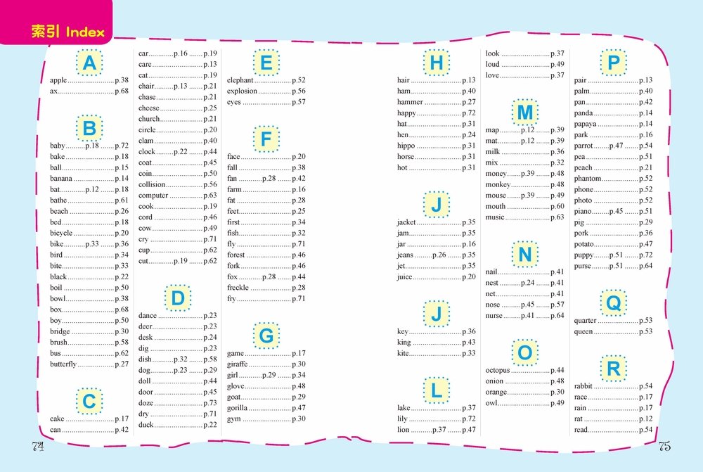 市面上許多發音書是按照母音和子音的分類來編排,導致讀者在尚未進入課程之前,就被一堆「長母音、短母音、半母音、有聲子音、無聲子音、邊音、塞音、擦音」等語音學術語給嚇壞了,大人都看不懂了,小朋友怎麼會理解?有鑑於此,本書採用由字母A到Z的編排方式,沒有嚇人的語音學術語,讓您以最自然無壓力的方式學習英文發音。