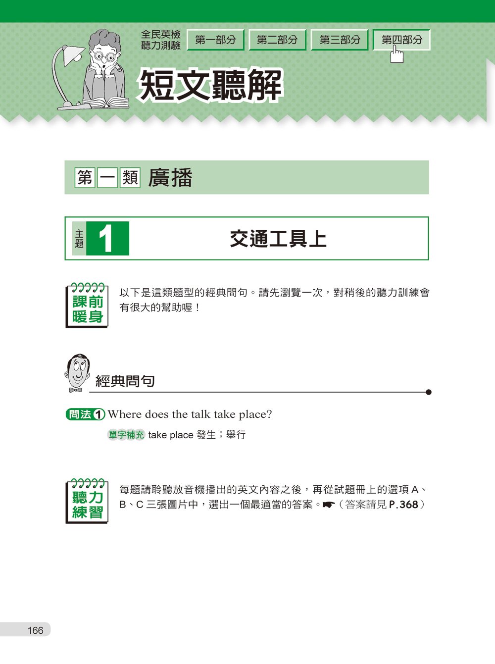 ◆ 情境式題型訓練,徹底分析常考出題情境,完整收錄必考題型,厚植聽解能力!