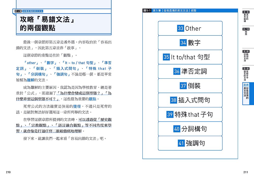 針對一些常見的易混淆和容易出錯的文法現象進行了詳細解析和說明,例如 other 的用法、數字常見的錯誤、倒裝句等,幫助學習者避免這些常見錯誤並提升寫作和口語表達的準確性。認識道地英語的基本規則。
