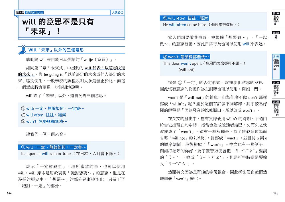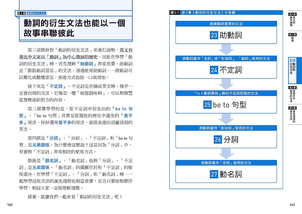 介紹了英文中由動詞延伸的用法,例如can 和be able to的差異、must和have to 的理解等,幫助學習者掌握這些難以搞懂的細節並靈活運用。