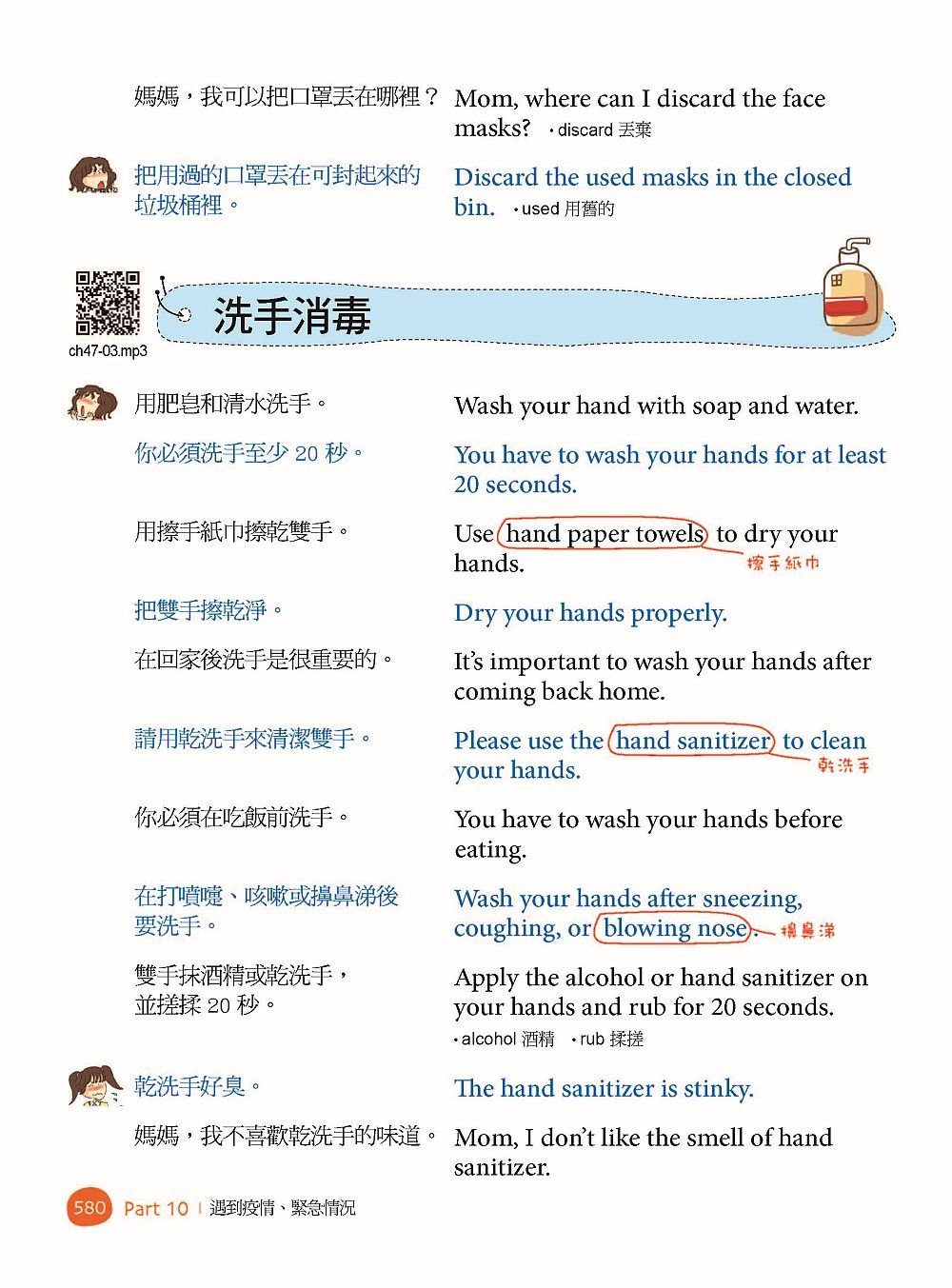 孩子吵著用你的智慧型手機,或是想要用點讀筆聆聽英文故事書的音檔,這時該怎麼跟他用英文溝通呢?沒問題,暢銷修訂版新增了符合 Z 世代的英文表達情境,不論是要跟小孩溝通使用智慧型手機的時間,或是聆聽故事書的音檔、又或是在家防疫,通通都可以從這本書找到相關內容,新增內容讓孩子能夠更早接收更道地的現代英文會話。