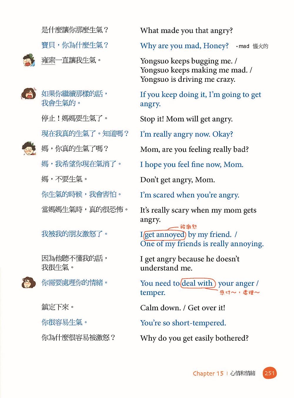 本書豐富程度,讓爸媽從懷孕就幫小孩練英文,你能對肚子裡的小寶寶說「Sweetie, do you hear Mommy’s voice?甜心你聽到媽媽的聲音了嗎?」或是對剛出生的寶寶說「Okay, okay. Mommy will feed you very soon. 好啦!好啦!媽咪很快就會來餵你了。」甚至對上學的小孩說「Why don’t you finish your homework first?你何不先完成你的家庭作業呢?」