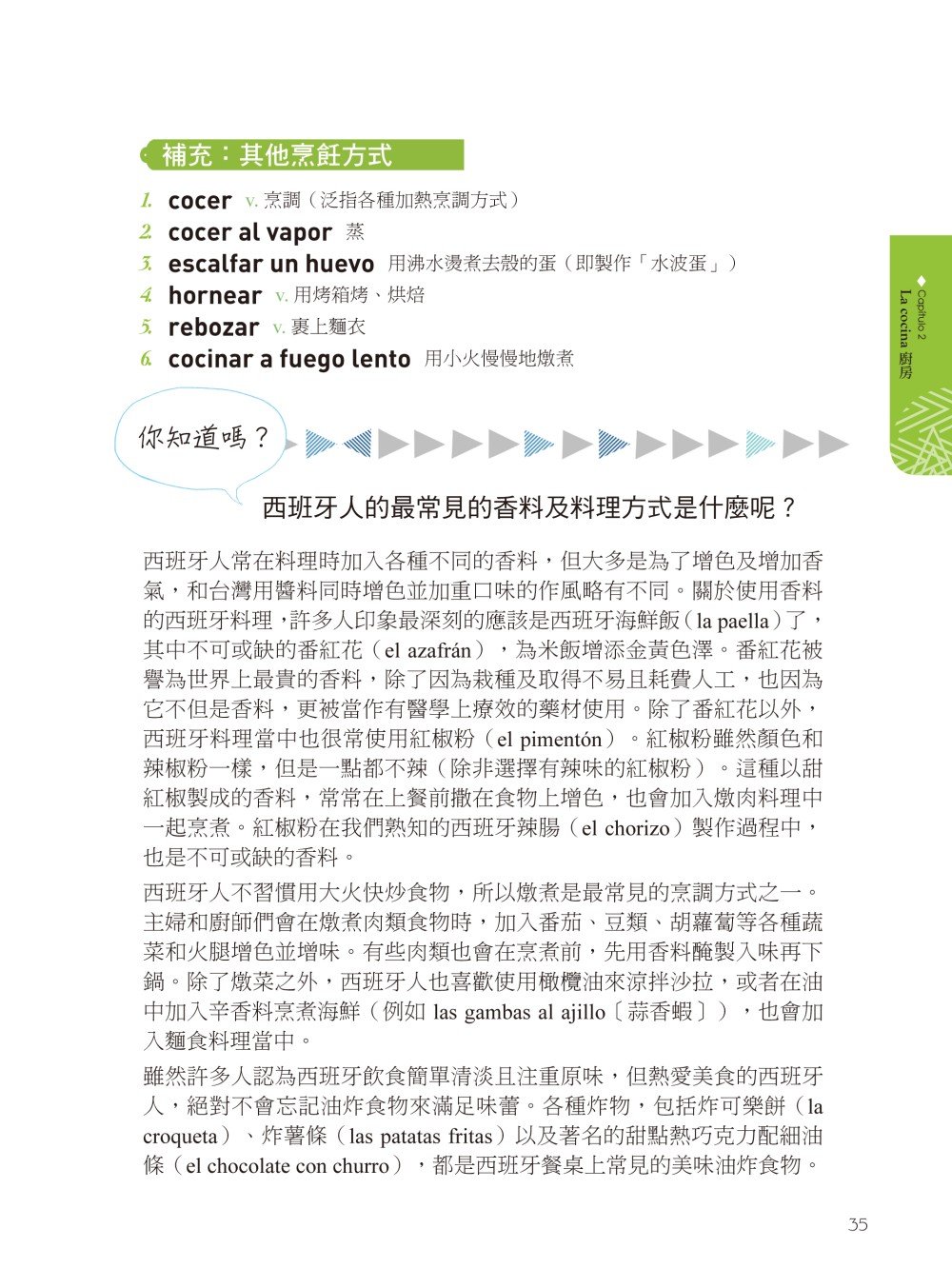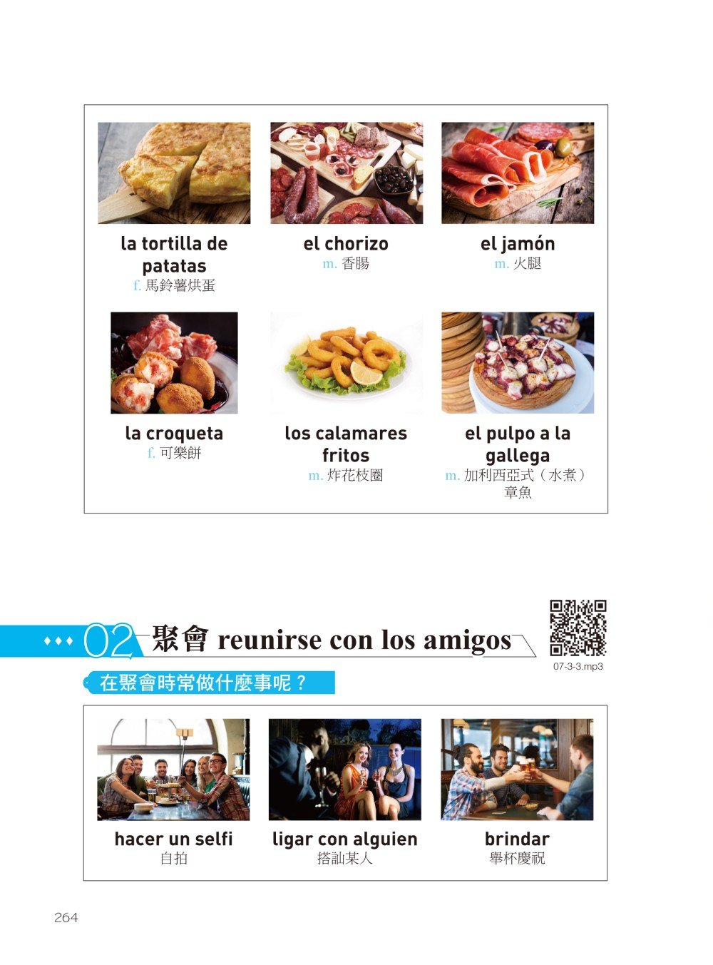 配合每個章節的地點場合,本書附上相對應的西班牙語小知識、俗語及慣用語、西班牙文化解說等等,讓你在學習單字的同寺,也能了解西班牙的風俗習慣,以及西班牙人的生活方式。