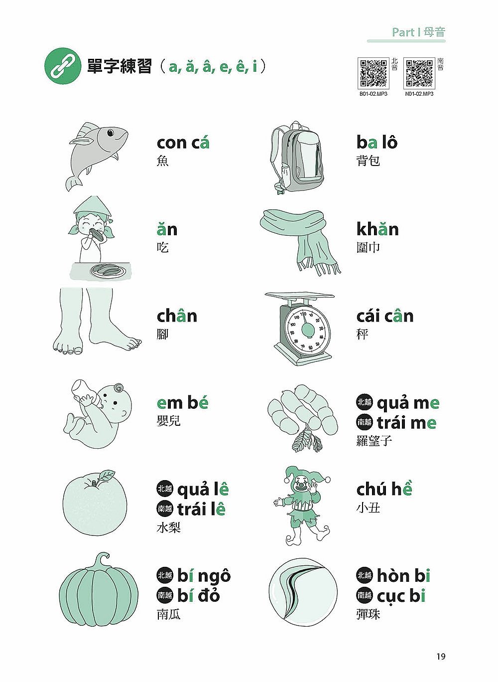 南越、北越的腔調差異書中全部都能看、能聽、能學得到!