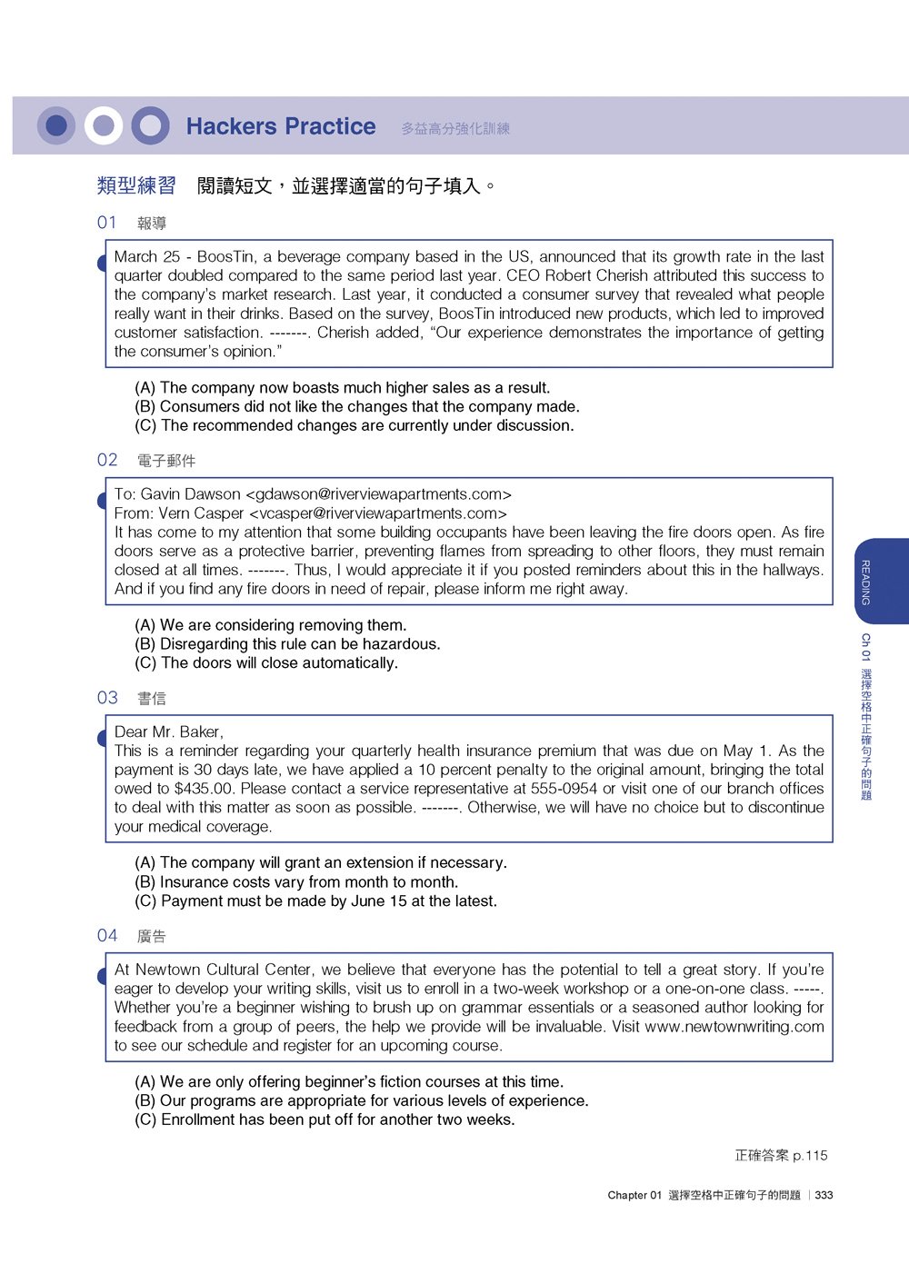 Chapter 01 選擇空格中正確句子的問題