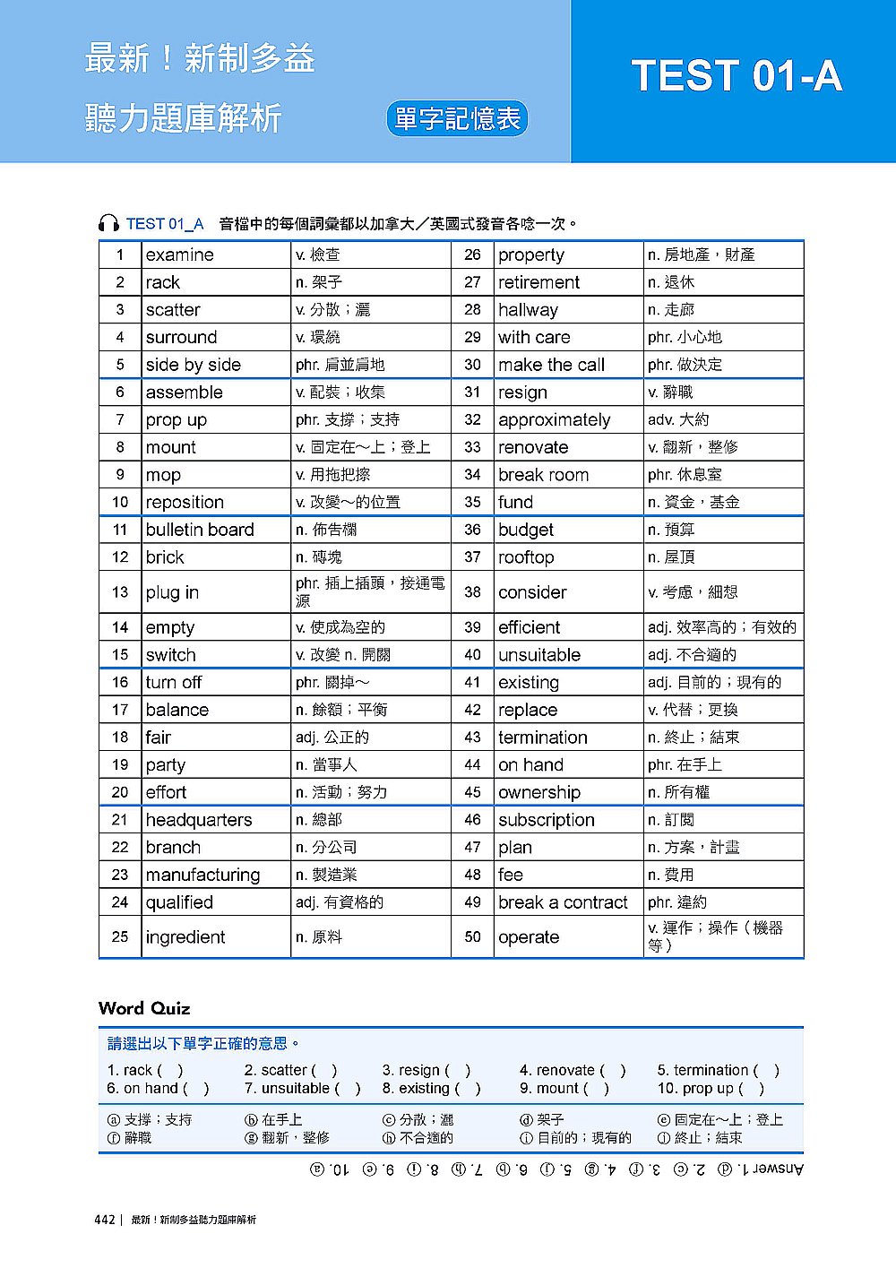 音檔內容:兩次英文單字 → 中文字義