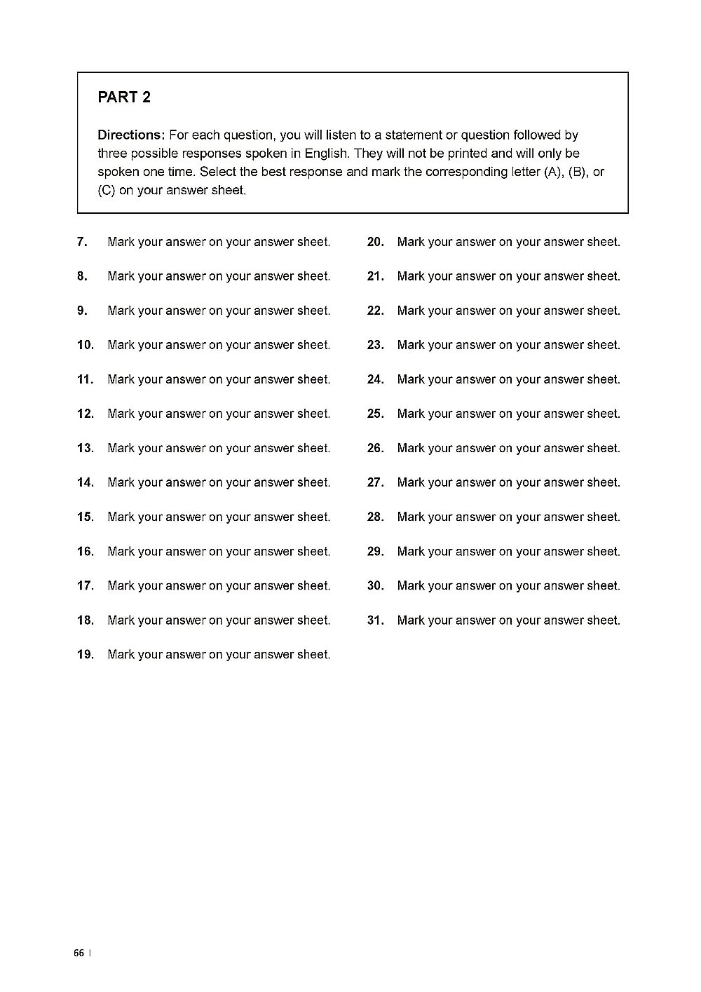運用方式:讓考生模擬實際測驗情境,當測驗開始,應將完整 45 分鐘的測驗內容聽完並作答,中間不宜中斷或重聽。